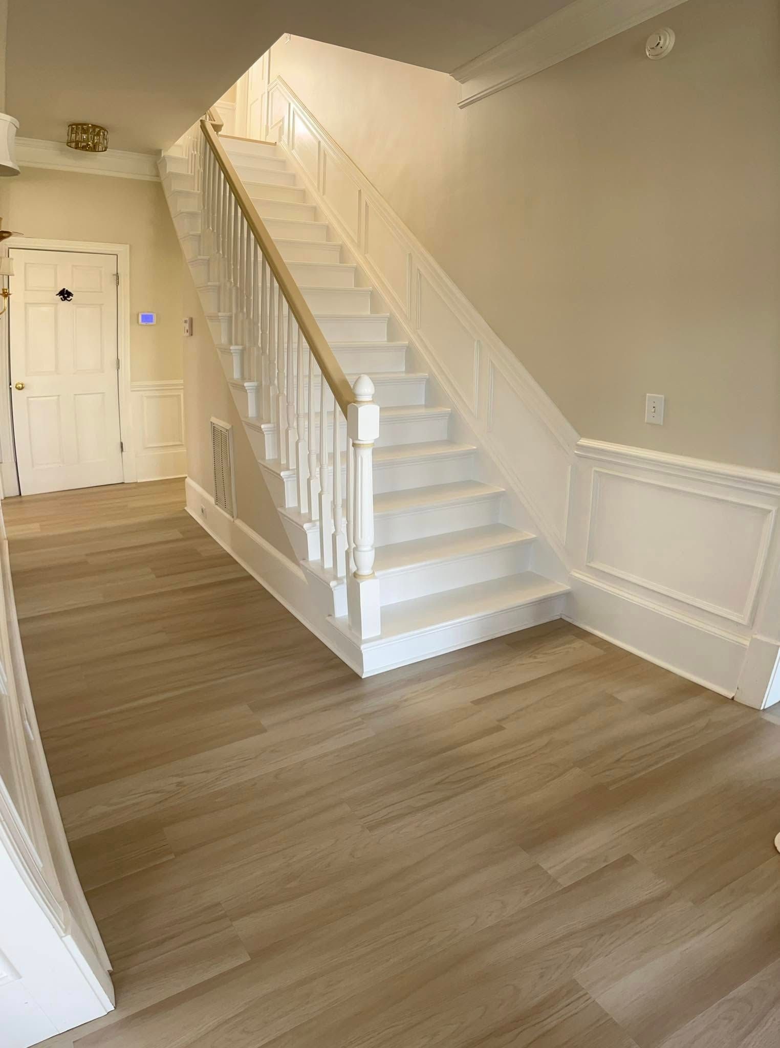 This project the homeowner wanted to refresh thier classic staircase to a more modern centerpiece with detailed fine lines.