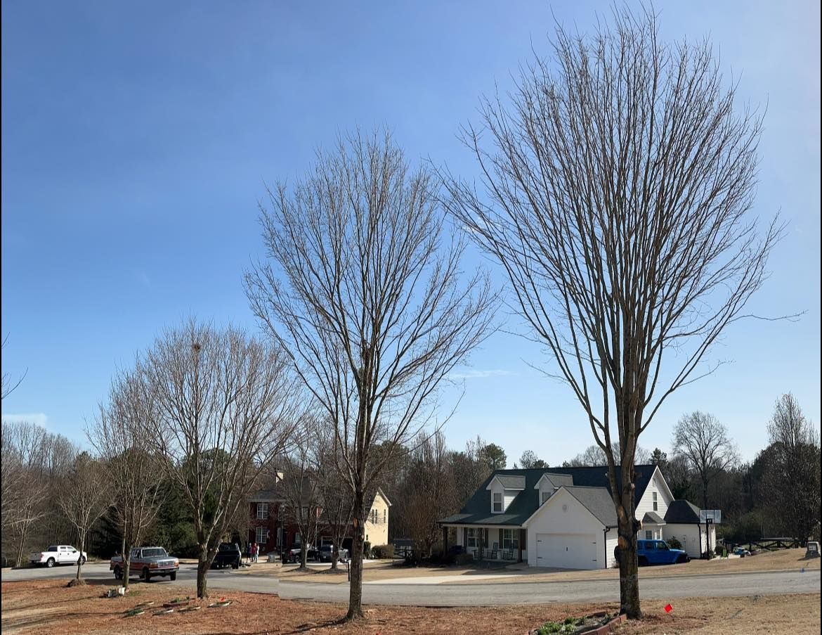 Trees over shed and water well were trimmed up to a height of twenty-four feet above ground per homeowner.